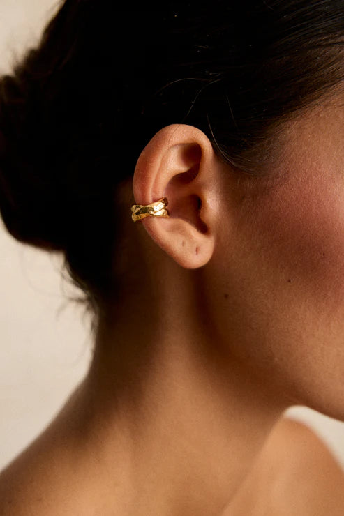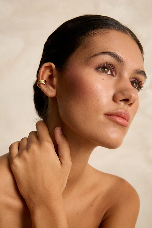 Este earcuff encapsula la elegancia de lo sencillo con un diseño que no pasa desapercibido. Ideal para llevar solo o combinado con otros pendientes, es el complemento perfecto para un look moderno y sofisticado.