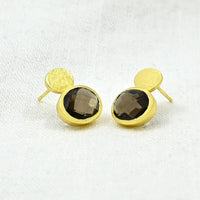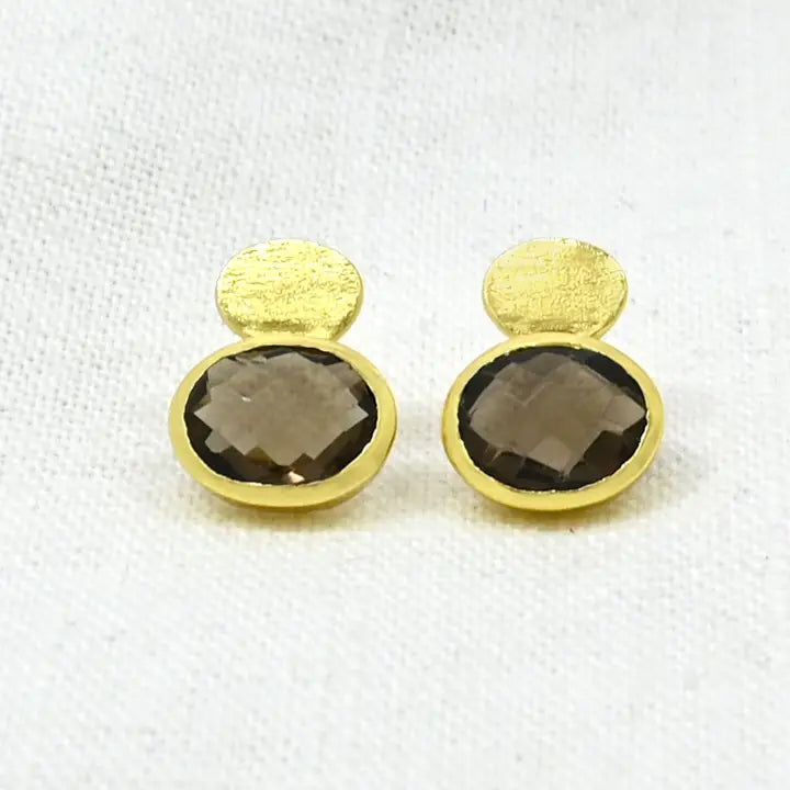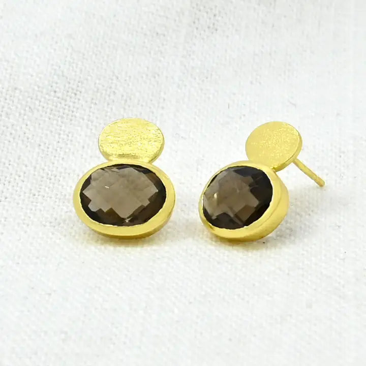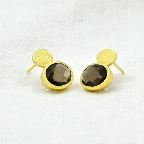Pendientes diseñados en latón con baño de oro y cuarzo ahumado.