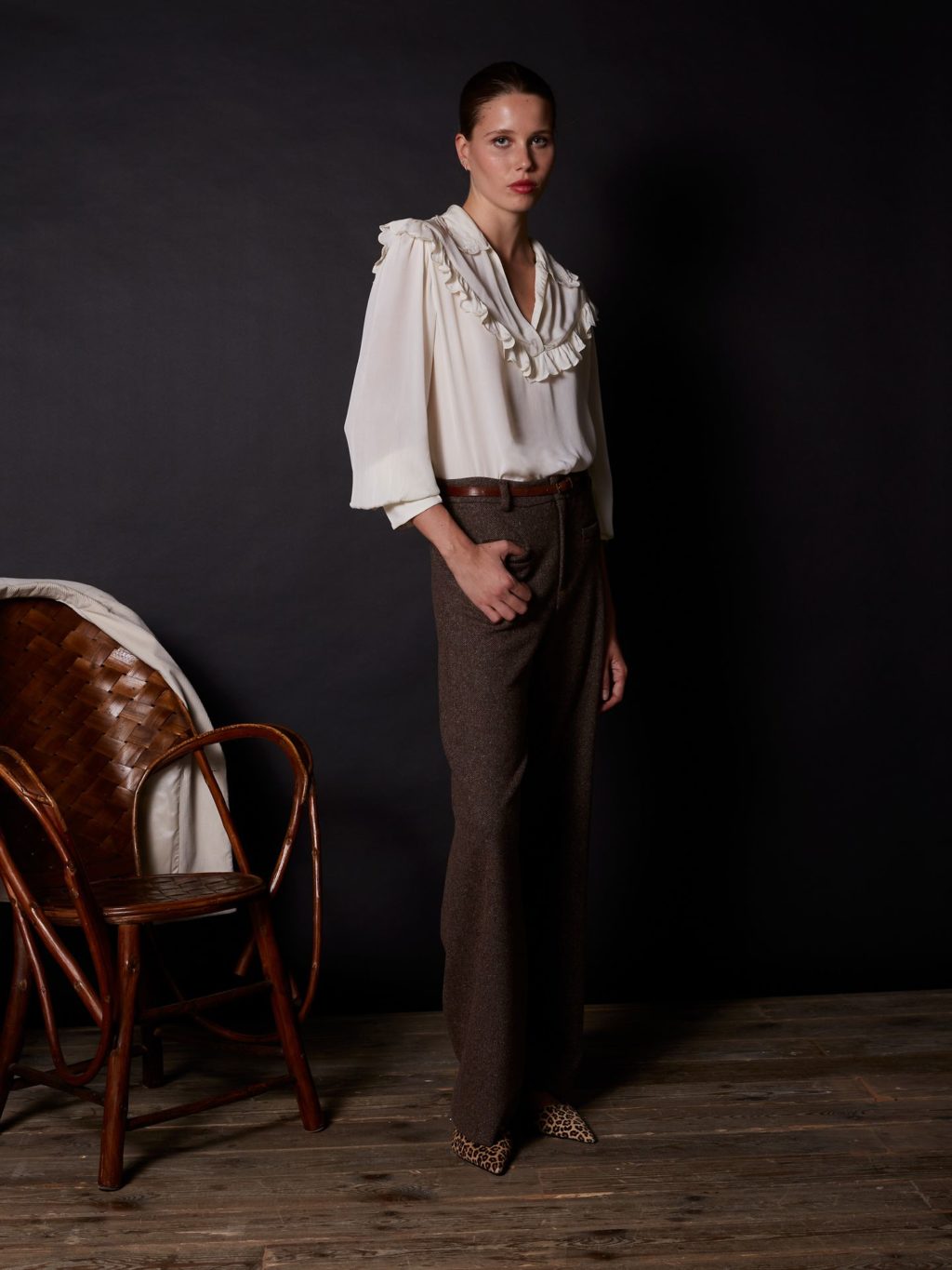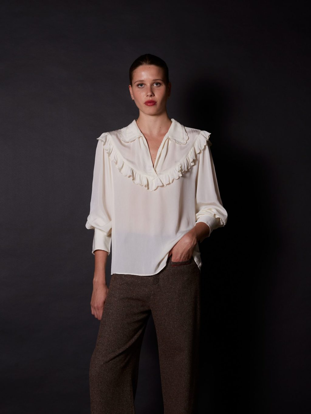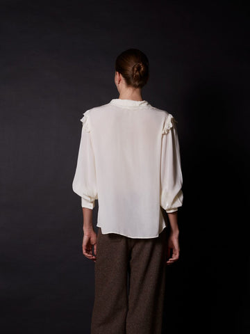 Camisa viscosa con detalle cuello marfil - M