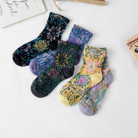 Calcetines flores verde y marengo
