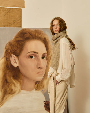 Cuello de lana de cuello alto y cintas para abrochar en torno a la cintura