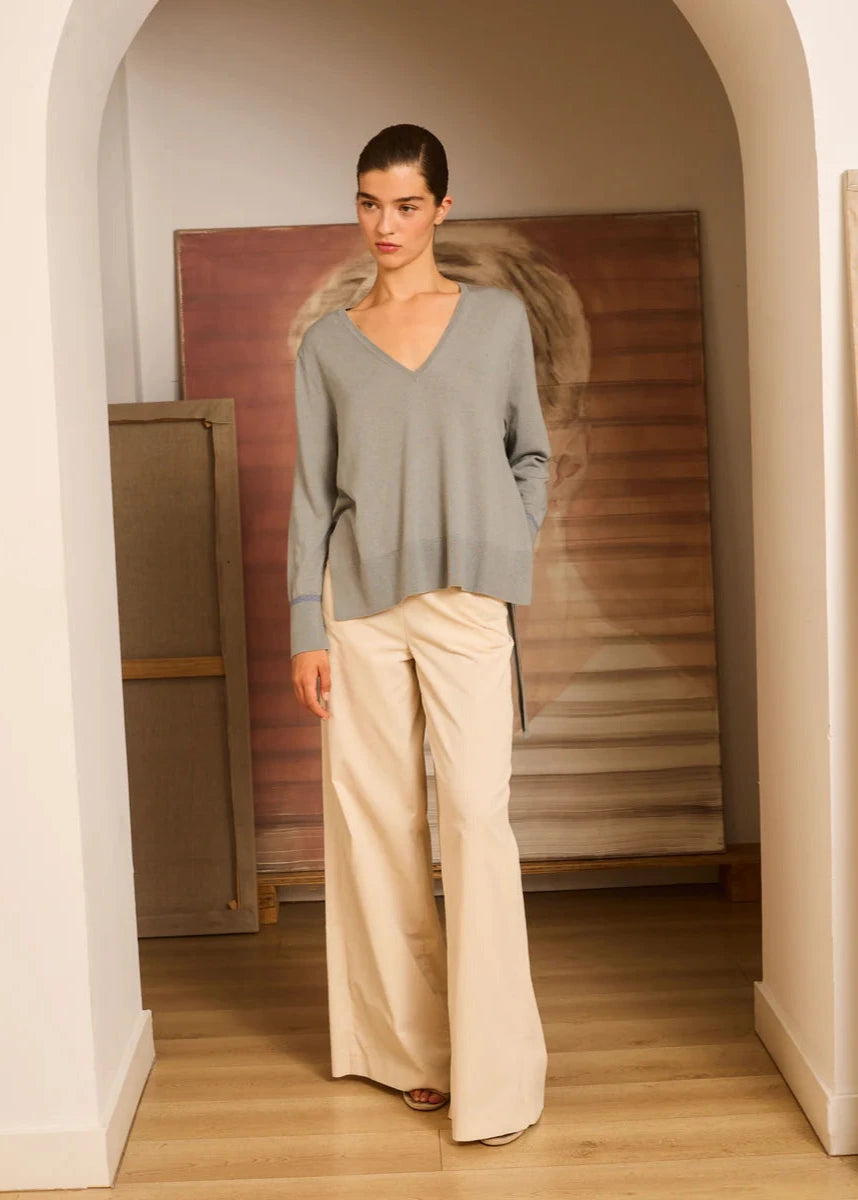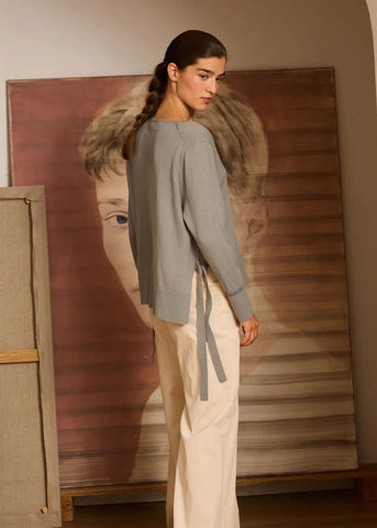 Jersey aguamarina de pico con lazadas En oferta