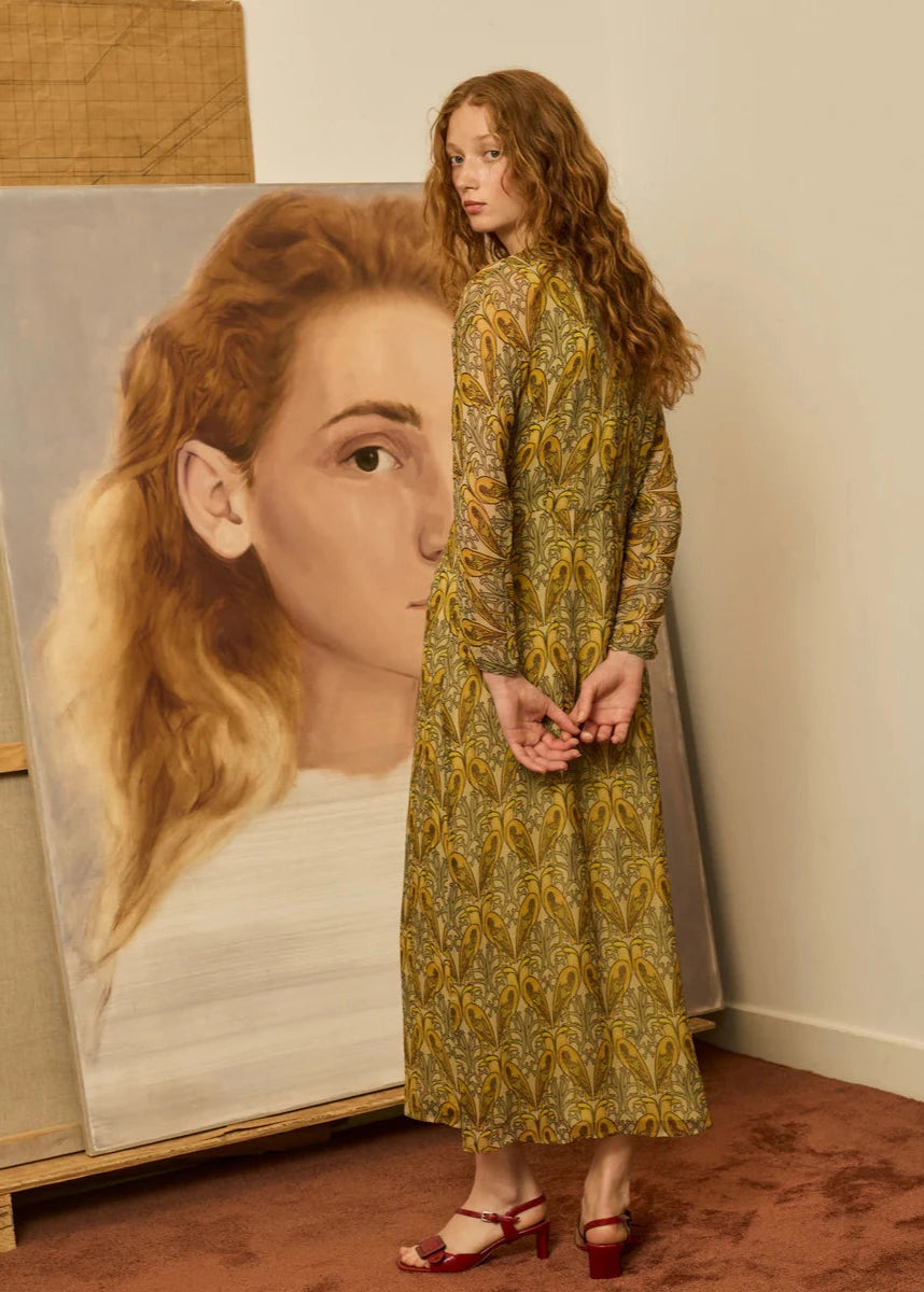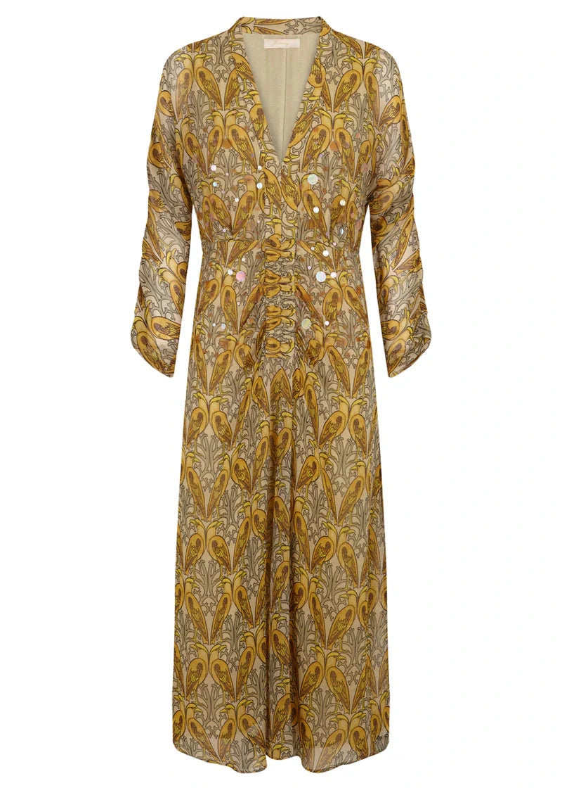 Vestido pájaros mostaza - 38