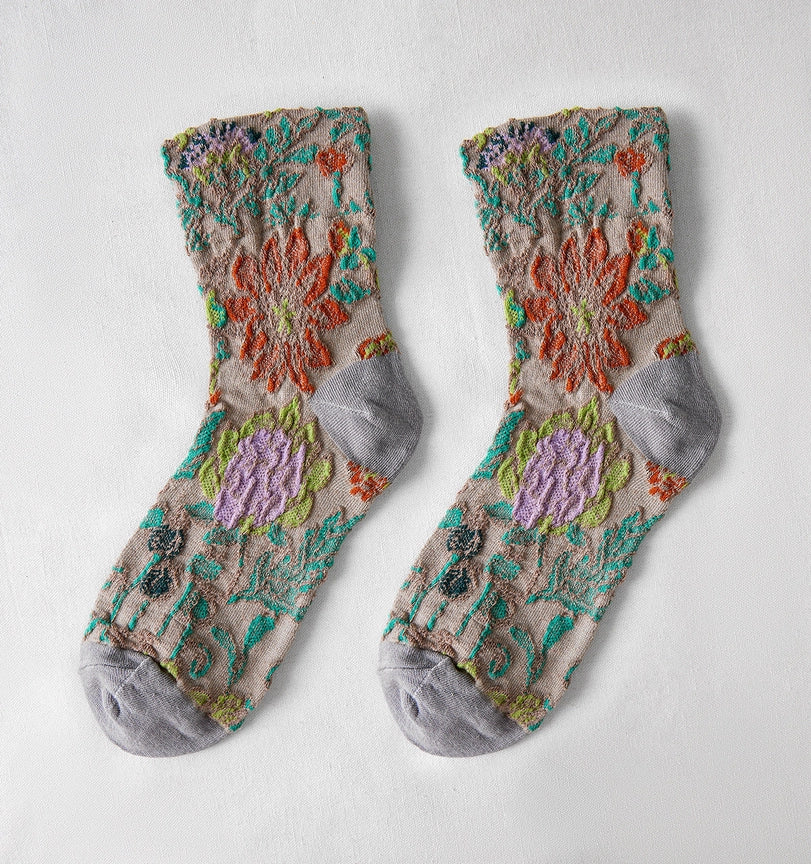 Calcetines flores kaki y gris