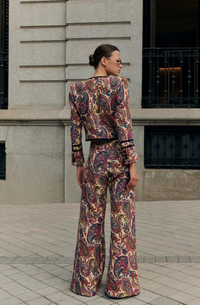 El pantalón Constanza, diseñado con pata de elefante para un estilo único y elegante. Su cinturilla y cremallera trasera garantizan un ajuste cómodo y moderno. Perfecto para combinar con la chaqueta Constanza, este pantalón es versátil: ideal tanto para estilismos formales con tacones o botas, como para un look casual con zapatillas. Destaca en cualquier ocasión con una prenda que fusiona comodidad y sofisticación.