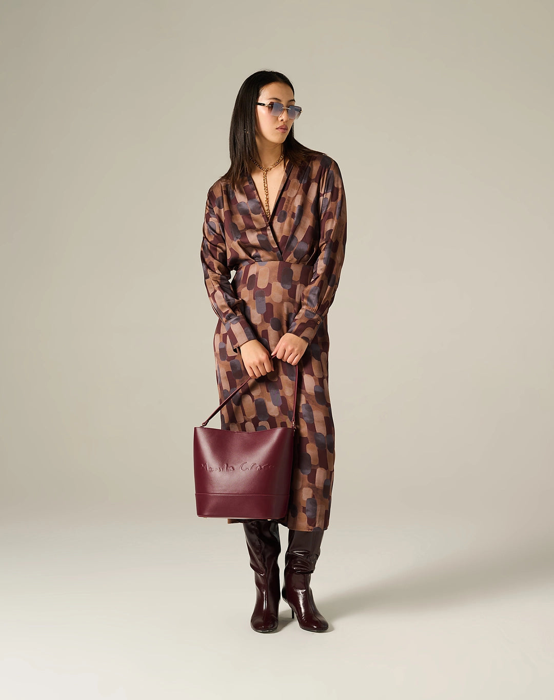 Vestido estampado geométricos marrón - 38