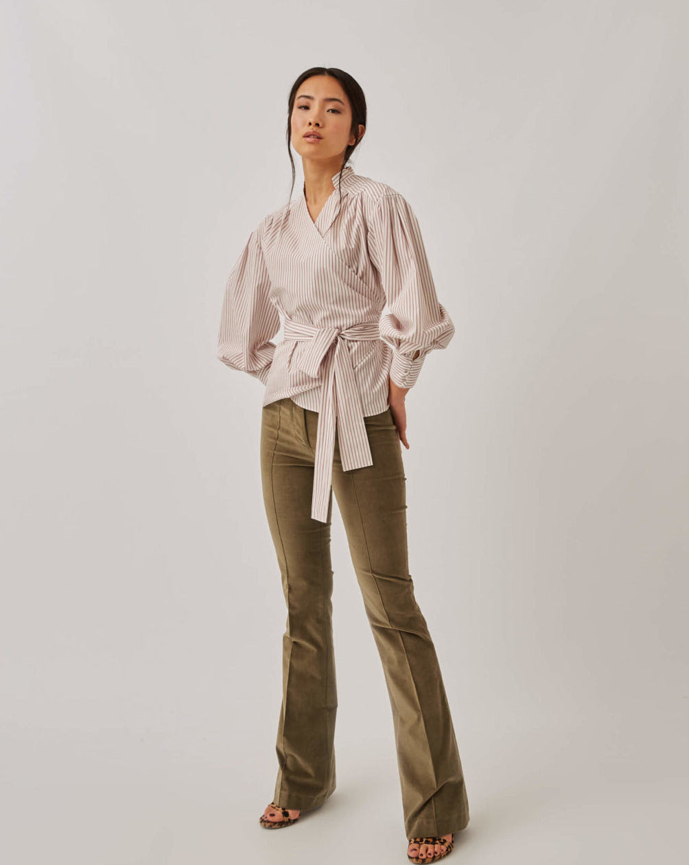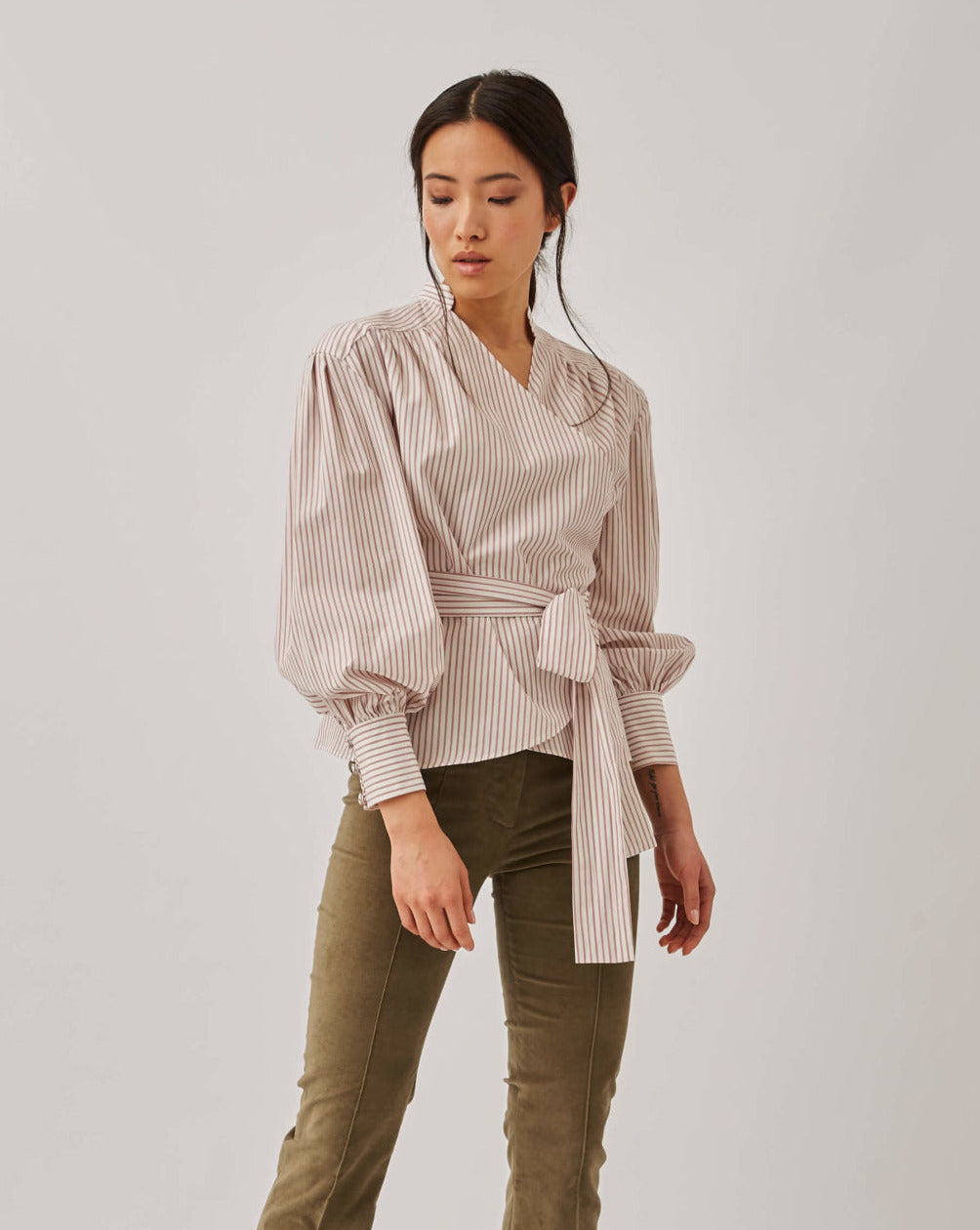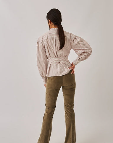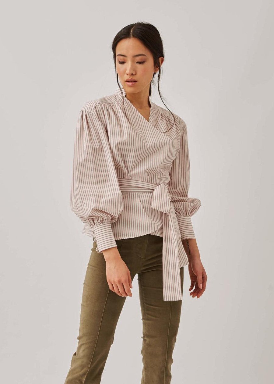 Blusa popelín cruzada rayas En oferta
