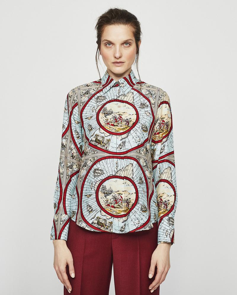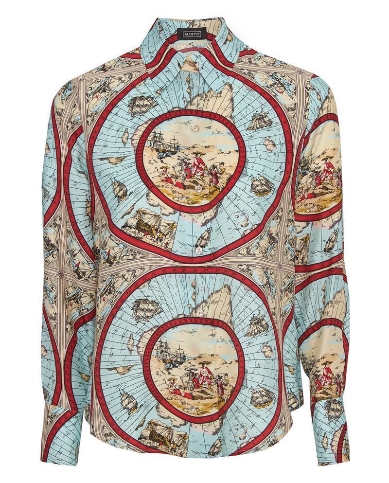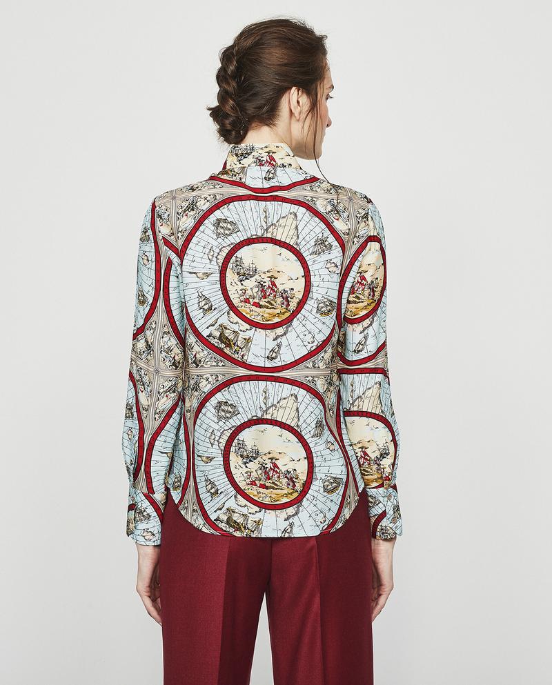 Blusa azul estampado exclusivo Vestido corto con pliegues