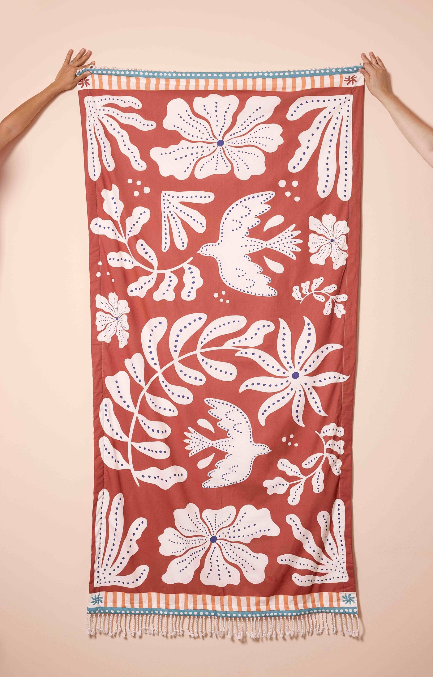 PENDIENTE DE RAFIA FLORA FOUTA DE ALGODÓN TOALLA CAQUI THE SUN