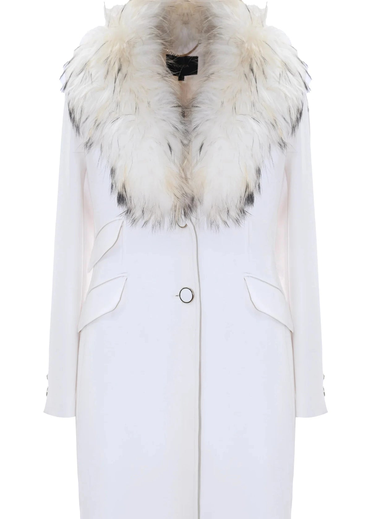 Abrigo Beige con botón joya dorado Falda Sena grosella