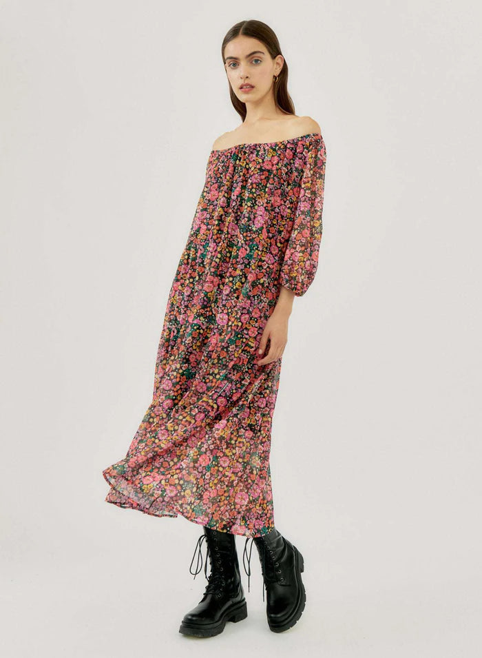 Vestido púrpura con tirantes trenzados Pantalón cuadro pequeño