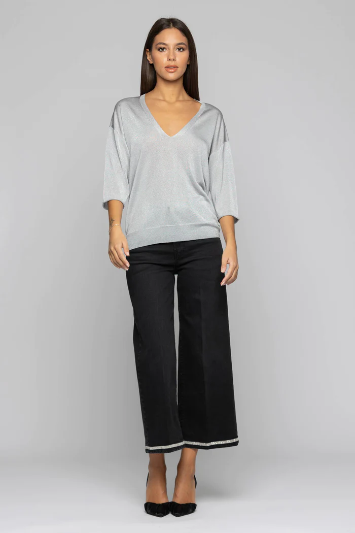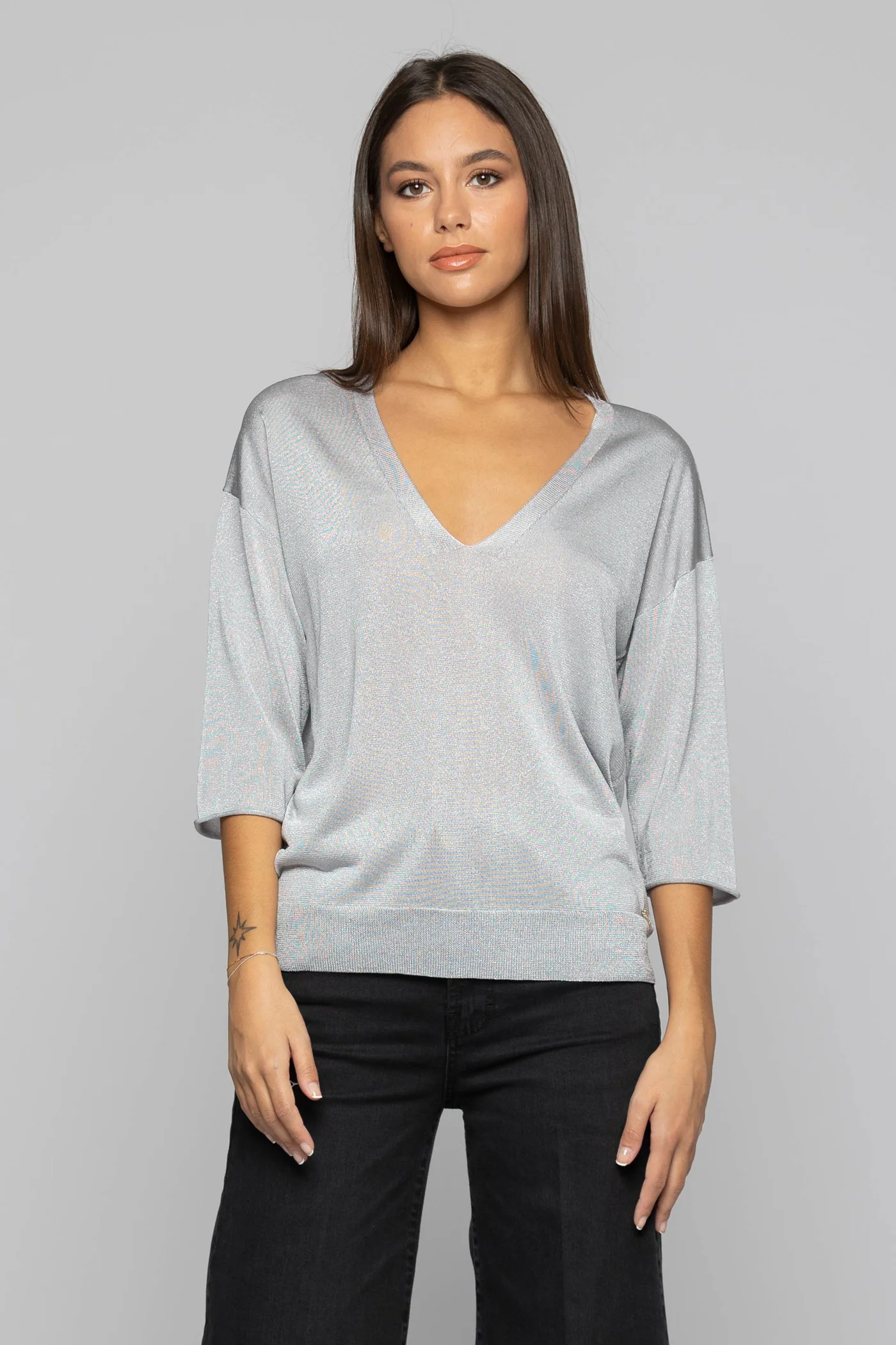 Jersey cuello alto lunares rosa y cobre Chaleco de punto negro