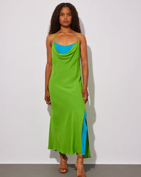 Vestido lencero bicolor verde-azul En oferta