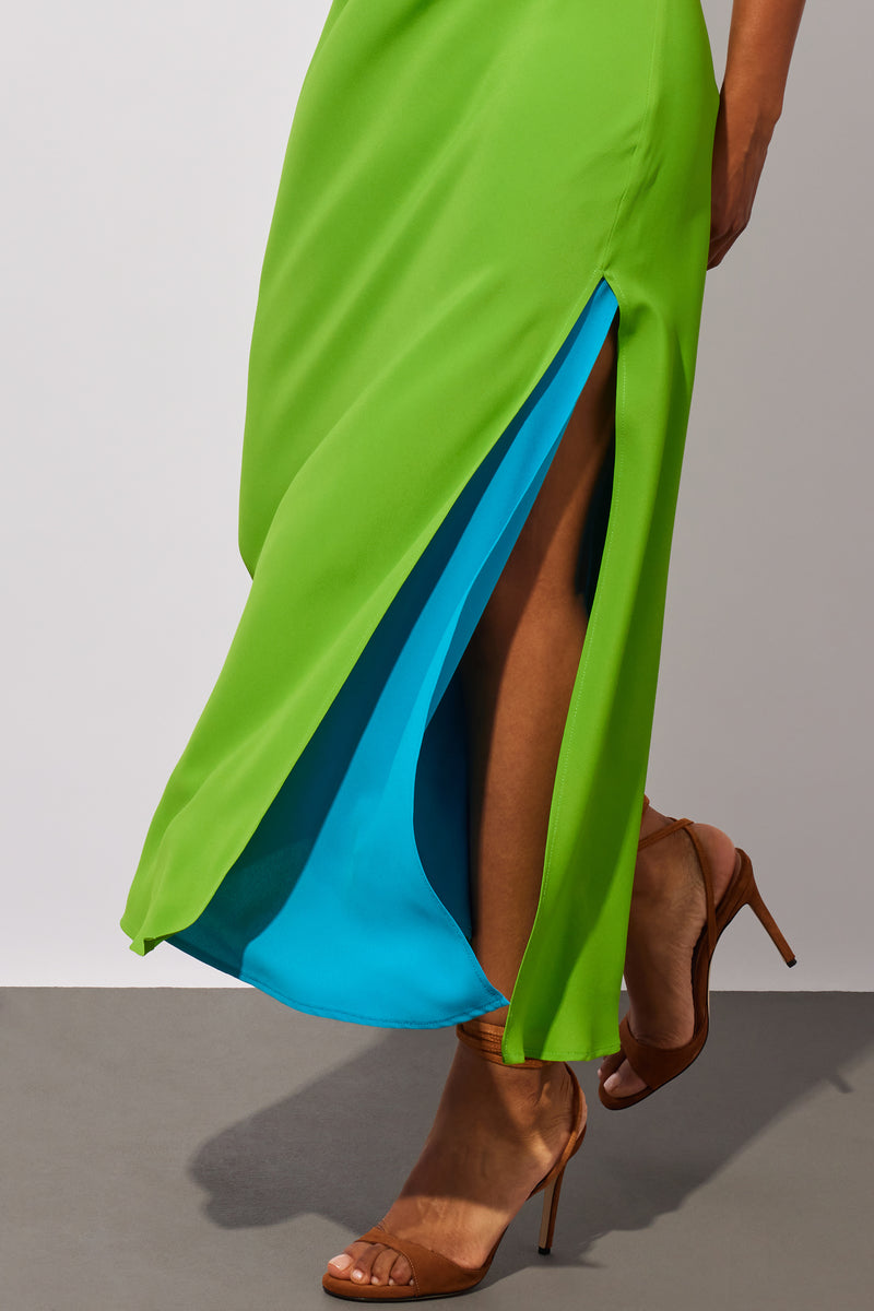 Vestido lencero bicolor verde-azul - 36