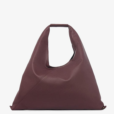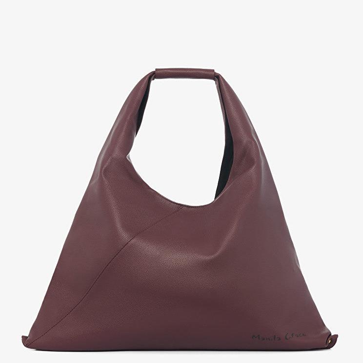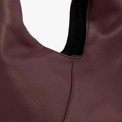 Bolso saco de piel suave gris Zapatilla glitter burdeos
