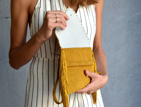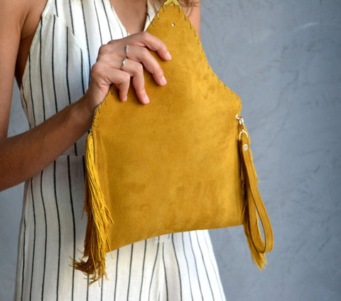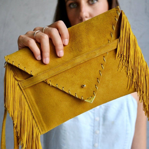 Clutch suave Medusa en color mostaza.